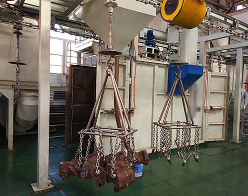 悬链通过式抛丸机工件是随吊链可连续运行、步进运行或采用先进的积放推式悬链输送工件,使工件在装卸料以及抛丸区分别处于停止状态,实现定点装卸和定点抛丸工序,根据工件不同可单点吊重50~2000kg,且生产率高,运行可靠,对各类易吊挂类零件的大批量清理,非常适用。一般可按照用户产品要求设计制作。